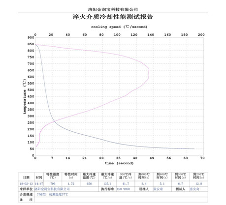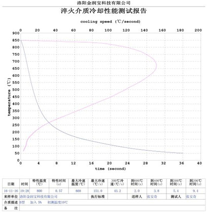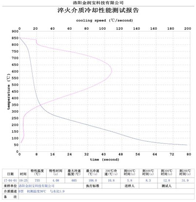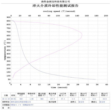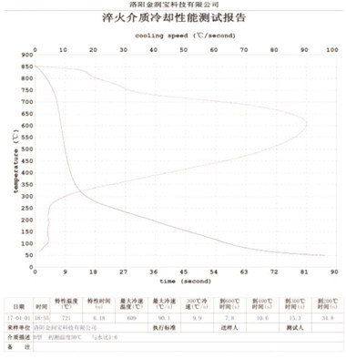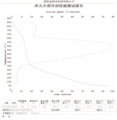 本產(chǎn)品無色或淡黃色透明液體,PH值為7。原液與水配比1:4~1:20之間。當(dāng)原液與水配比為1:4~1:9之間時,可完替代慢速淬火油、中速淬火油和高速淬火油。原液與水配比為1:4~1:5時,與慢速淬火油的冷卻性接近;原液與水配比為1:6時的水溶液的冷卻性與光亮中速淬火油的性接近;原液與水配比為1:8——1:9時的冷卻性與高速淬火油的性接近。